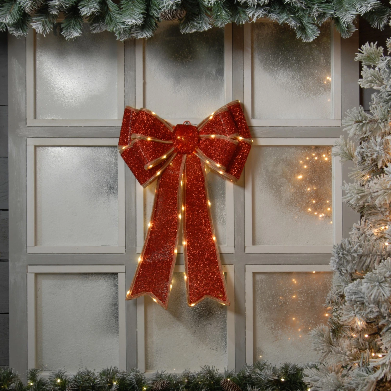 This beautiful red bow, lit with warm white LEDs, will be perfect as a statement piece for your door or to add a touch of elegance to any part of your festive display.