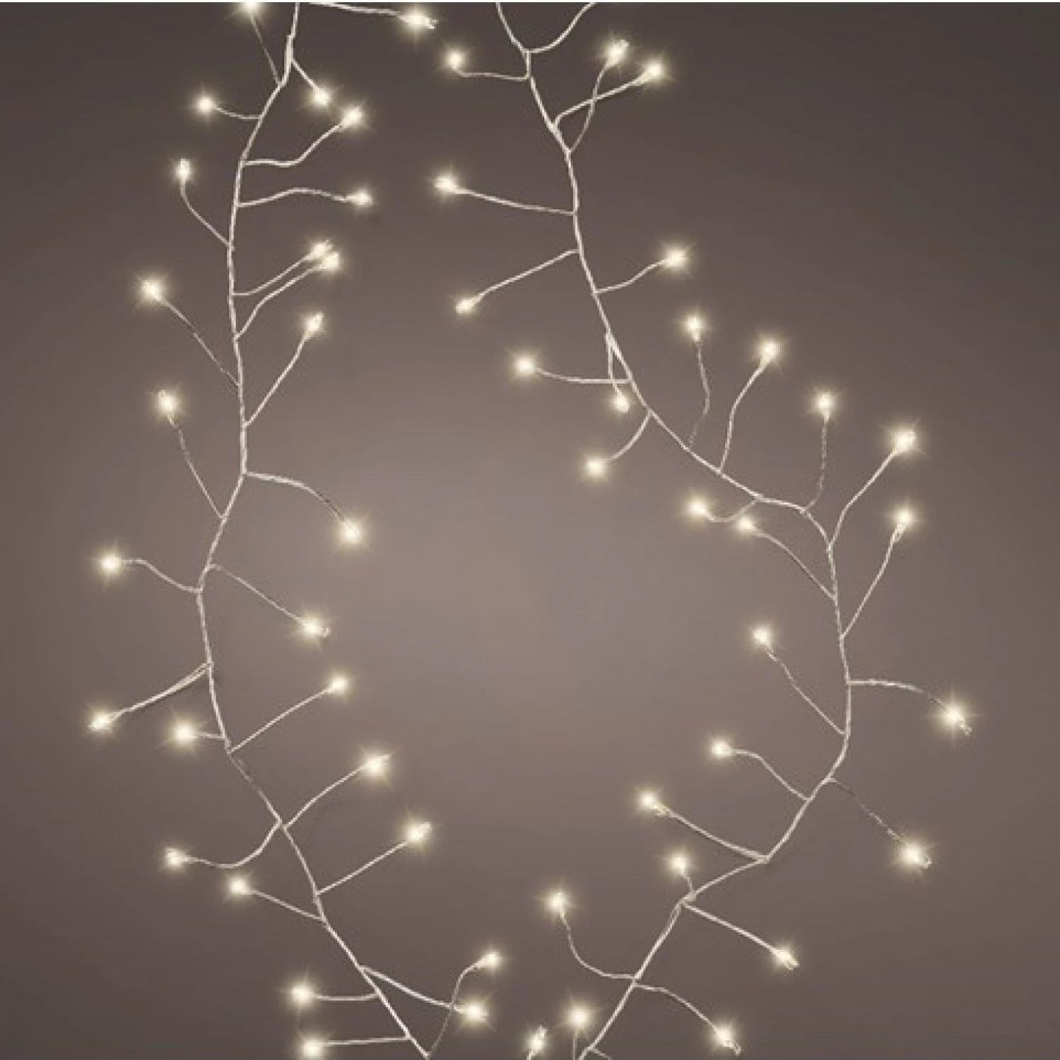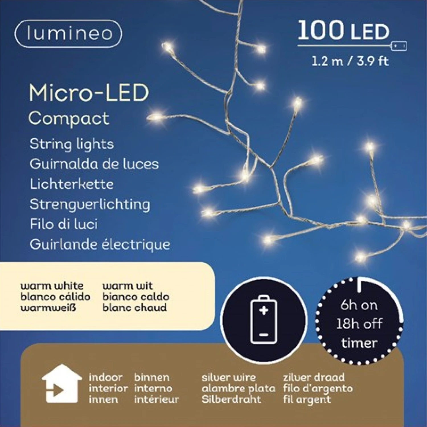 100 Battery Powered Warm White LED Cluster Timer Lights on Silver Cable