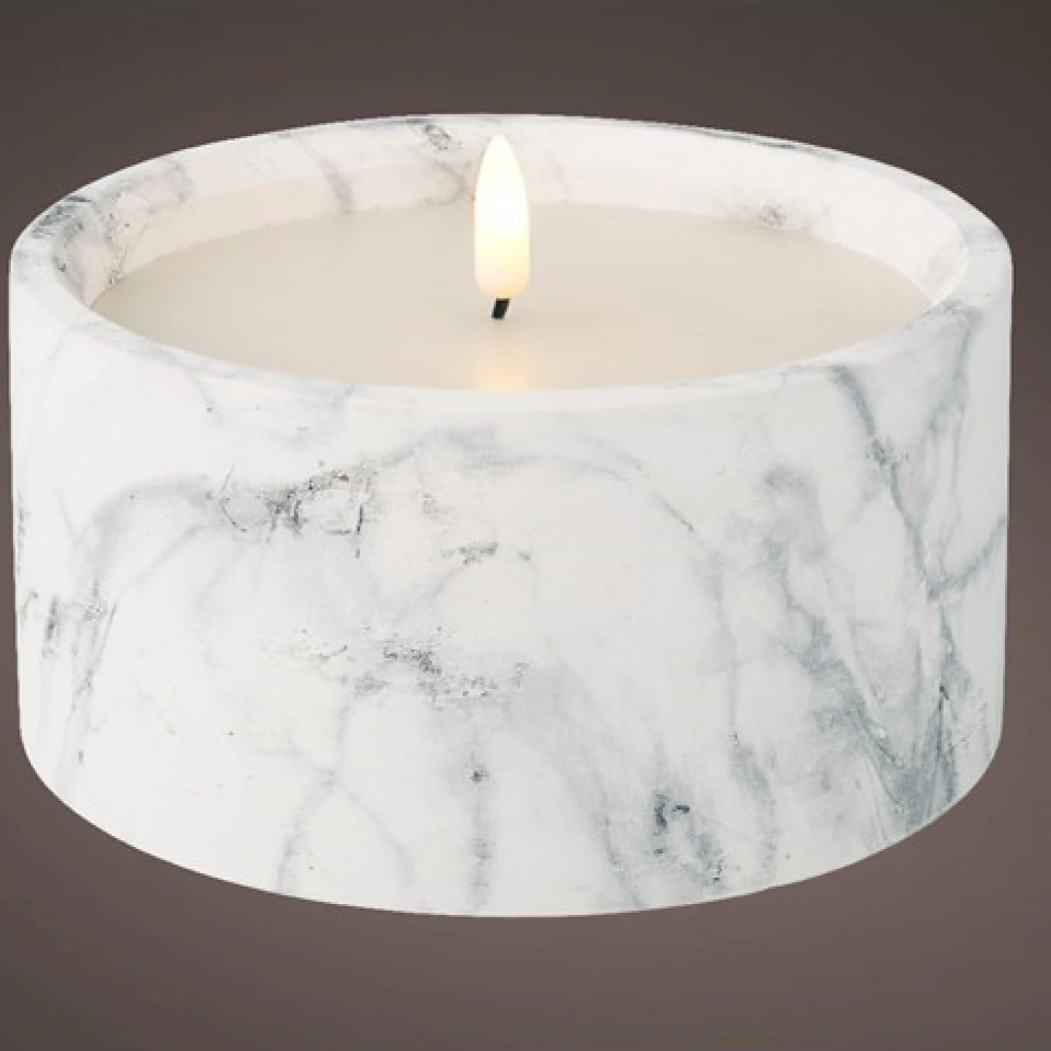 15cm Battery Operated LED Wick Candle in Marble Effect Holder