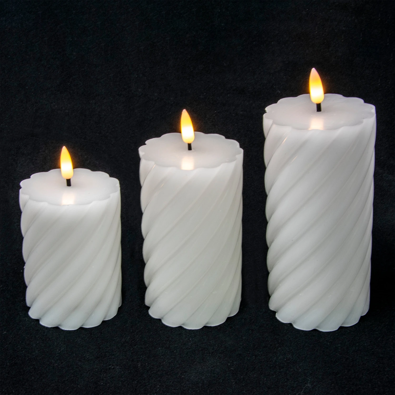 3 x Battery Operated LED Wick Candle with Swirl Design