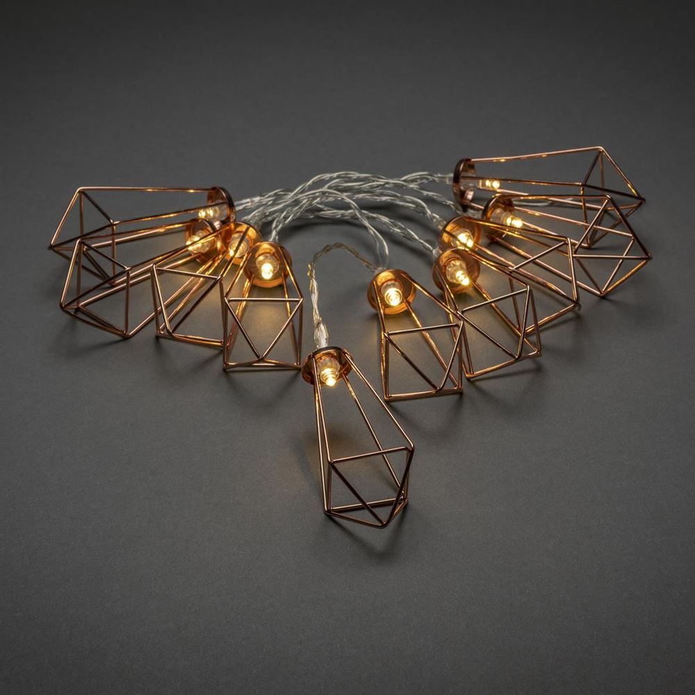 Set of 10 Copper Metal Warm White Geo Lights