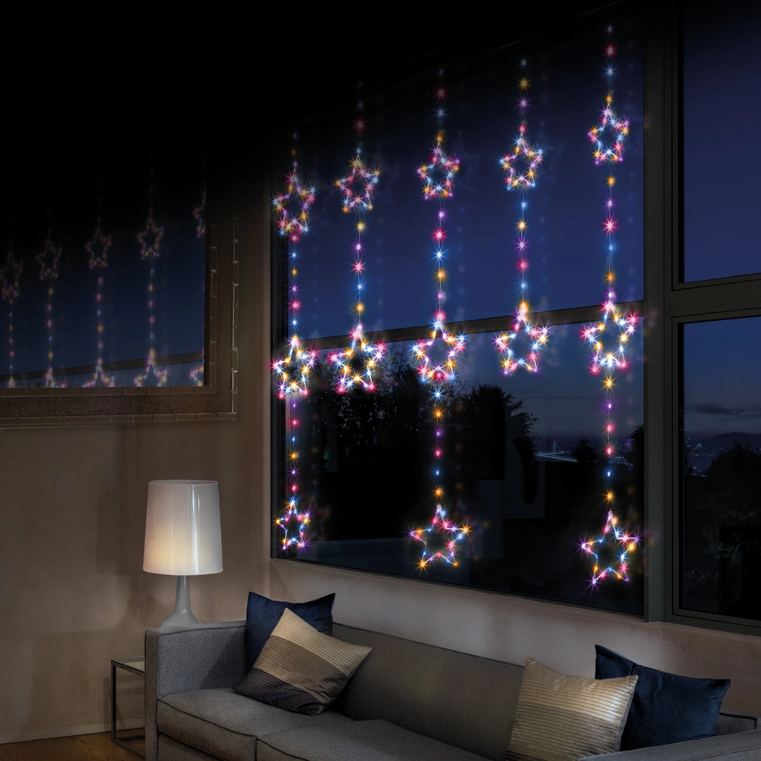 Delicate and stunning curtain light in a unique shape accented by stars