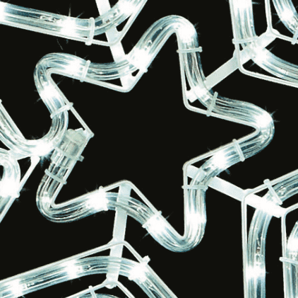 Stunning rope light silhouette of cool white star. This design is popular for its versatility and soft twinkling lights.