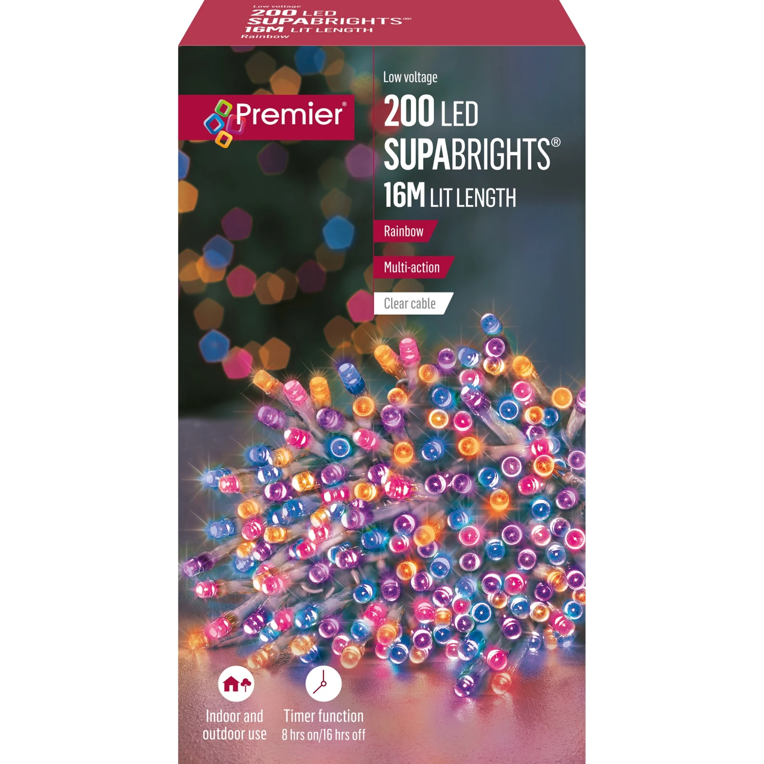 200 Rainbow Multi Action LED Supabright Lights with Clear Cable