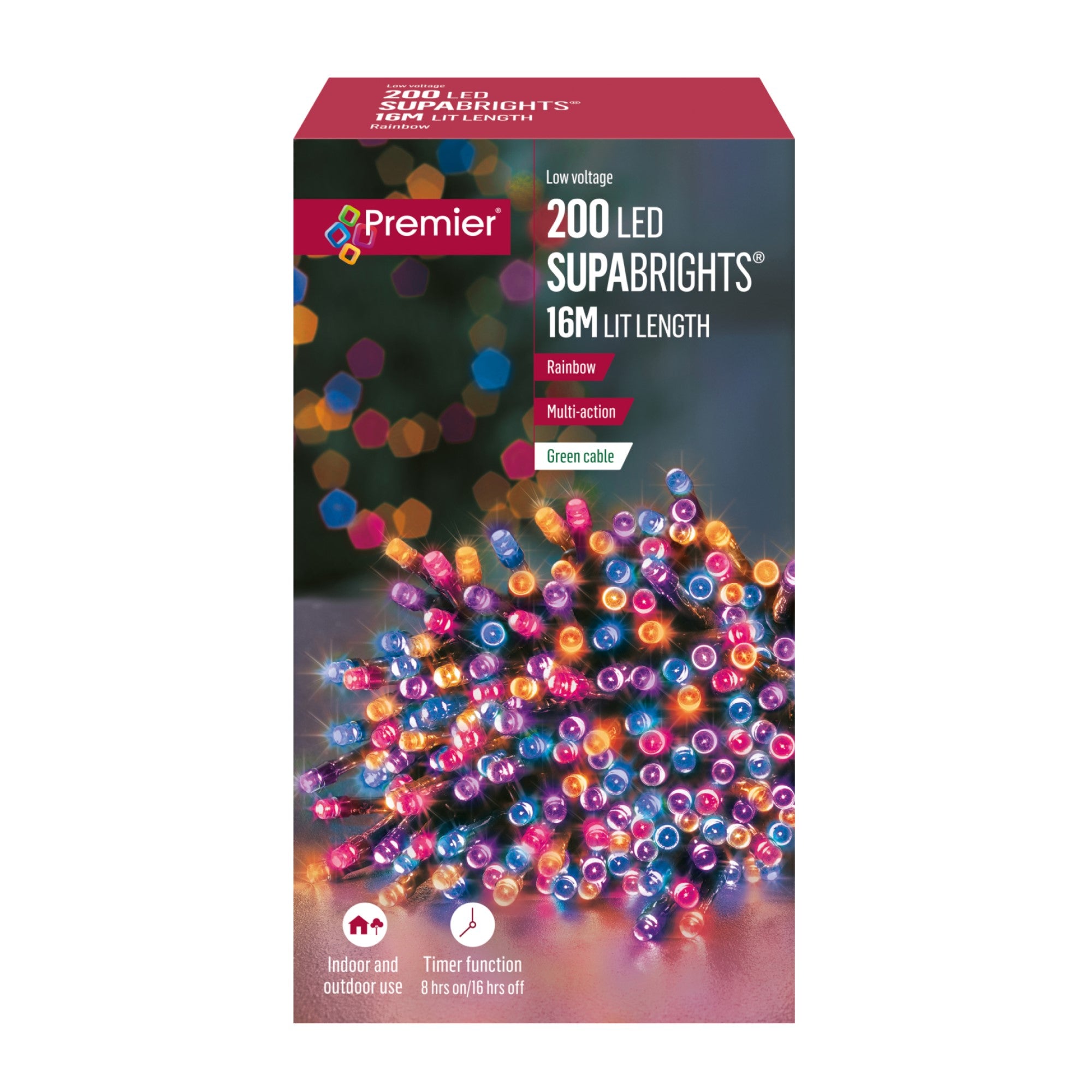 LED Christmas lights in rainbow colours with multi-action and timer feature