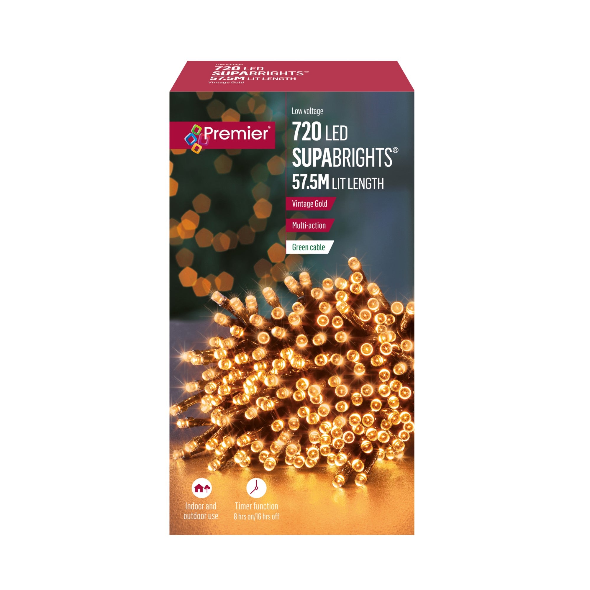 LED Christmas lights in vintage gold with multi-action and timer feature