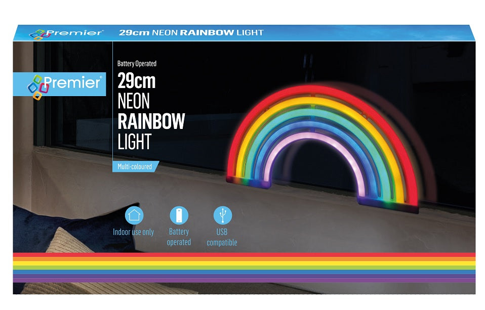 Stunning neon rainbow window light perfect for adding a bit of joy this festive season!