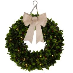 Coupon 🤩 Three Kings Holly Ring 🎄 Christmas Wreath With Gold Bow And LED Lights ❤️