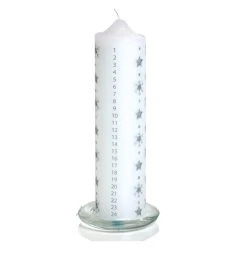 New 🔥 Premier 🎅 Christmas Advent Countdown Candle With Glass Holder ~ Silver Star And Snowflake 🔥