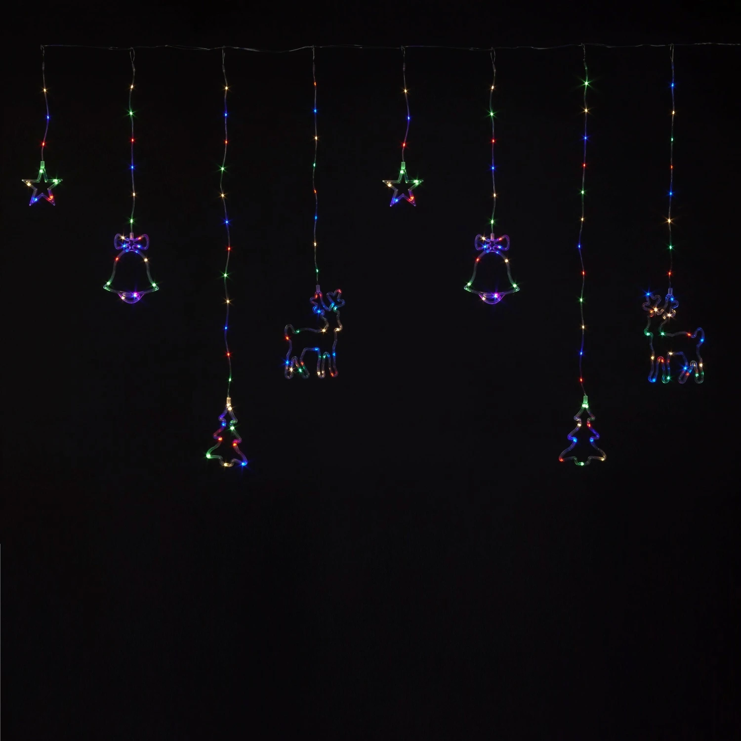 Gorgeous multi coloured curtain light complete with festive motifs to add some extra special sparkle to your home this Christmas.