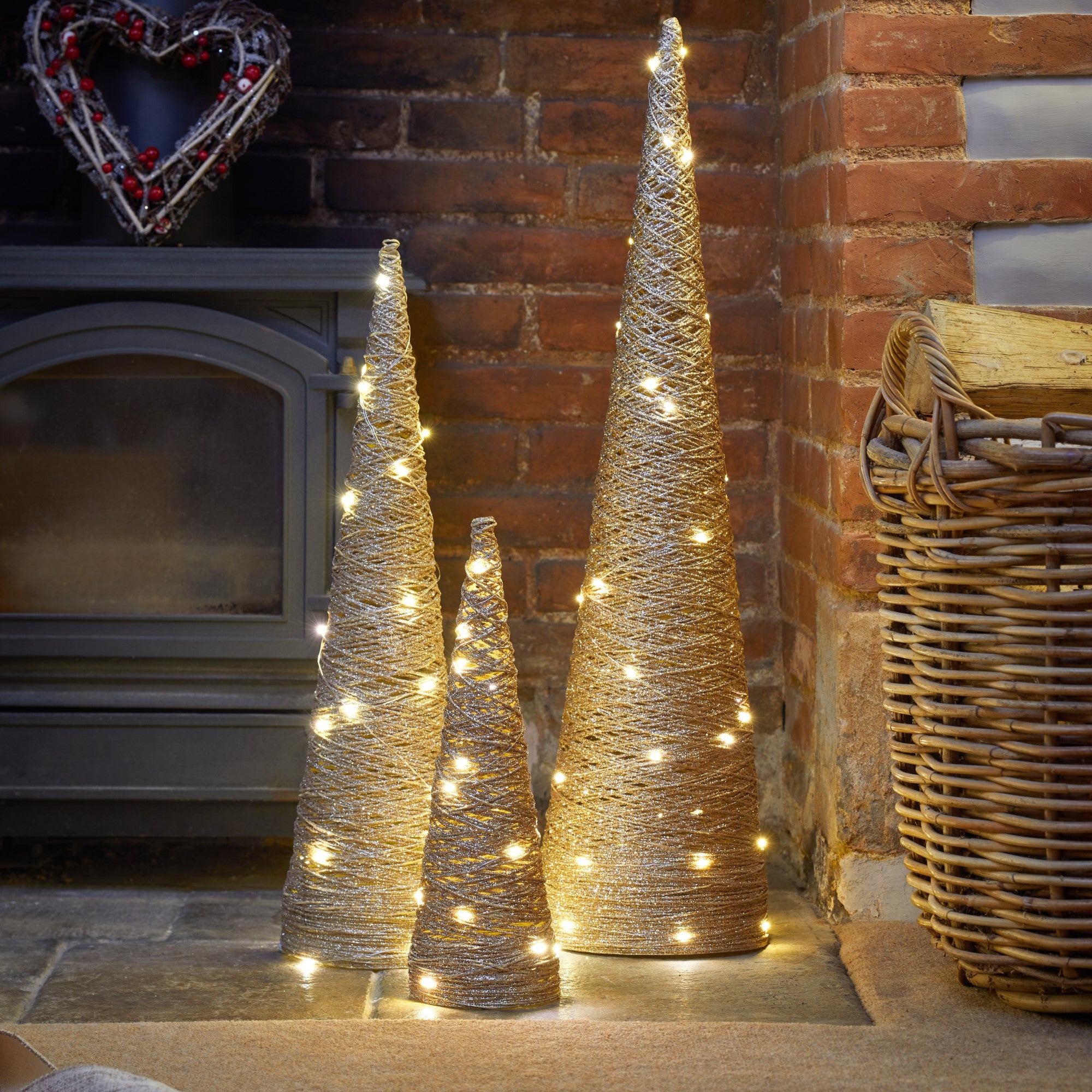 Set of 3 Gold Glitter Cone Trees with Warm White LED’s
