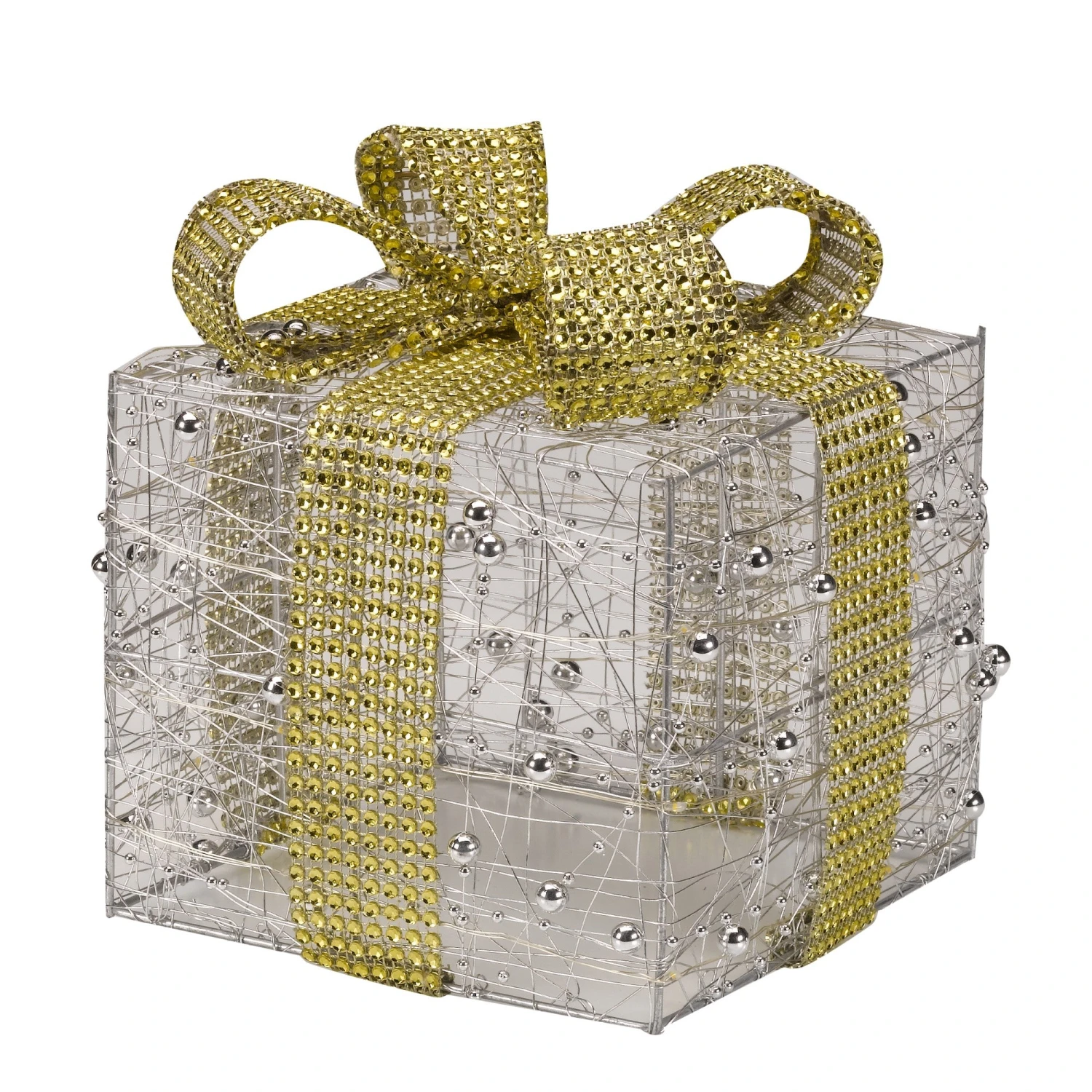 Set of 3 Pre Lit Silver Glittery Christmas Presents